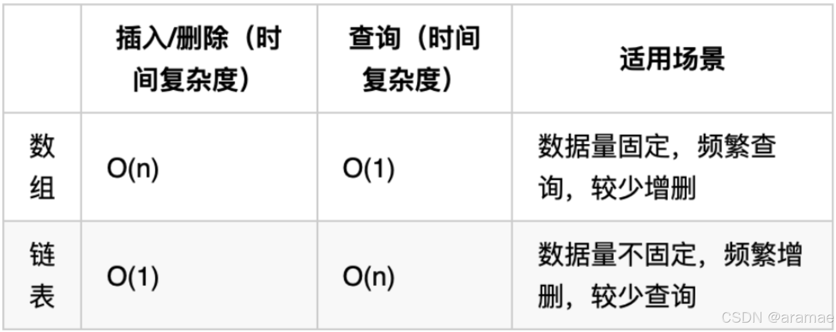 再把链表的特性和数组的特性进行一个对比,如图所示: