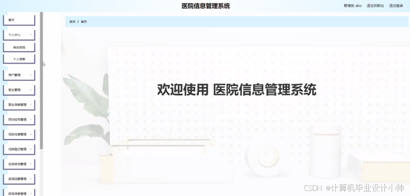 关键词:医院信息管理系统,Mysql数据库,java语言 springboot框架