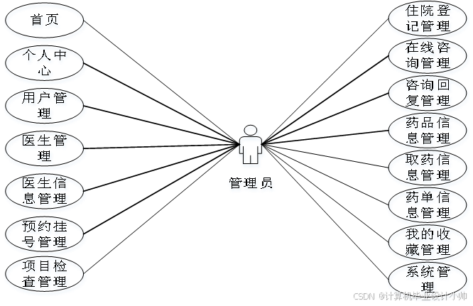 医院信息管理系统的开发过程中,采用B / S架构,主要使用java语言进行开发,结合最新流行的springboot框架。使用Mysql数据库和Eclipse开发环境。该医院信息管理系统包括用户、医生和管理员。其主要功能包括用户管理、医生管理、医生信息管理、预约挂号管理、项目检查管理、住院登记管理、在线咨询管理、咨询回复管理、药品信息管理、取药信息管理、药单信息管理、我的收藏管理、系统管理等功能。