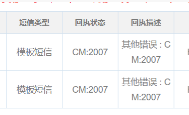 模板短信发送后,接口返回成功,但实际没有收到短信,后台查询发送记录,错误代码CM2007。