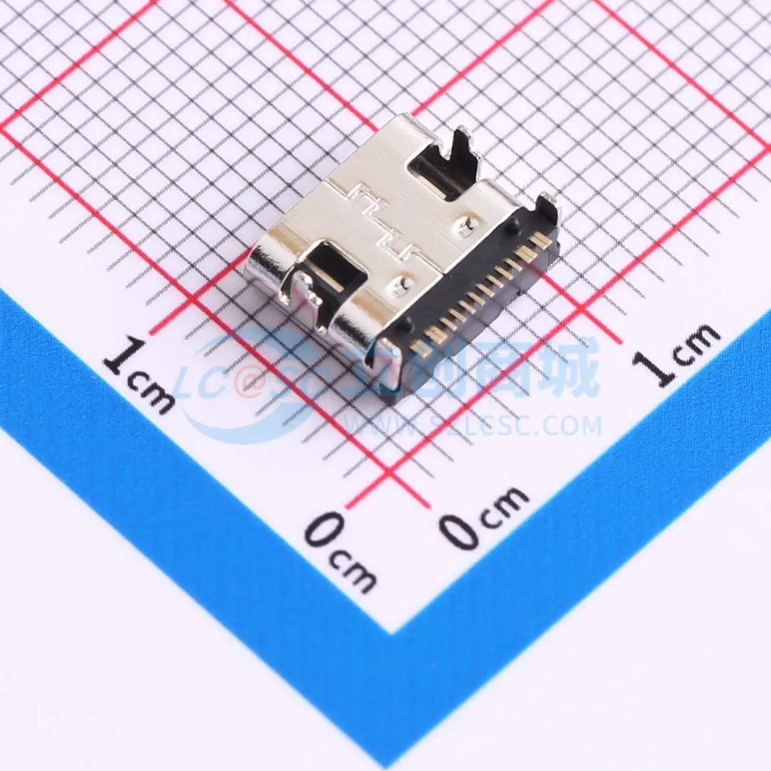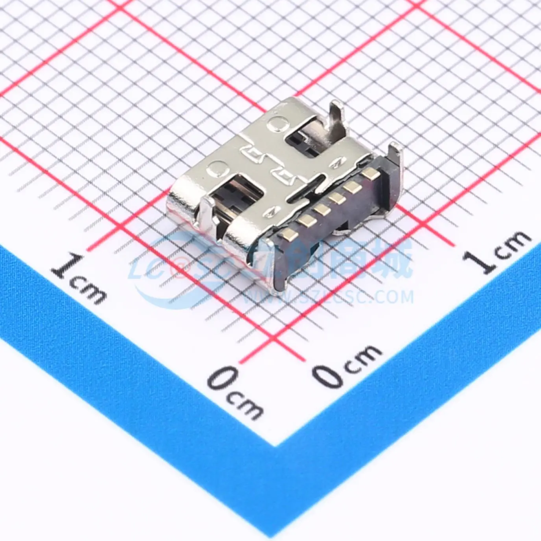 最常见的供电USB-Typec接口,整体由6个引脚(电源正负极、CC引脚组成)配合四周的固定引脚组成,考虑到Typec的正反插功能,上下做了对称结构,并且2组电源正极、负极也给载流能力做了大的提升。