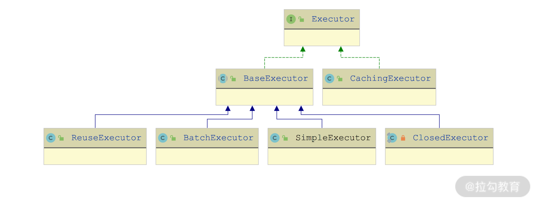 - 首先介绍了最常用、也是最简单的 Executor 实现类------ SimpleExecutor 实现,它底层完全依赖 StatementHandler、DefaultResultSetHandler 和 JDBC API 完成数据库查询和结果集映射。