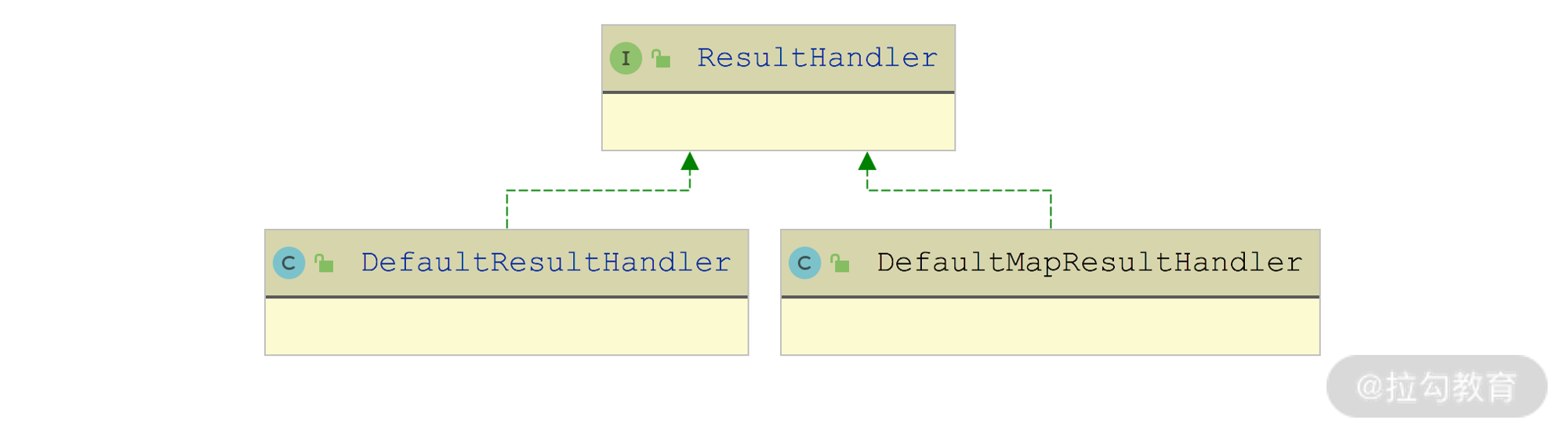 在 DefaultResultSetHandler 中维护了一个 resultHandler 字段(ResultHandler 接口类型)指向一个 DefaultResultHandler 对象,其核心作用是存储多个结果集映射得到的 Java 对象。