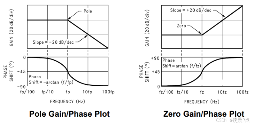 - 极点和零点指的都是某个频率点,极点频率 f p f_{p} fp、零点频率 f z f_{z} fz;