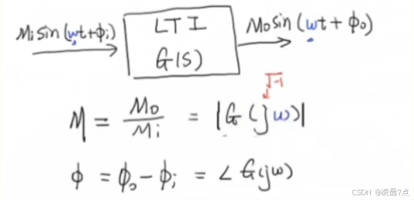 - 幅角响应: ϕ = ϕ o − ϕ i = ∠ G ( j w ) \phi=\phi_{o}-\phi_{i}=∠G(jw) ϕ=ϕo−ϕi=∠G(jw)