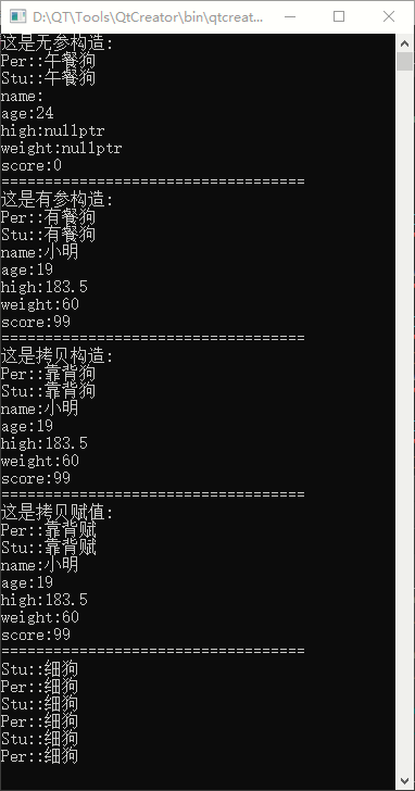 Per(string name,int age,double h,double w):name(name),age(age),high(new double(h)),weight(new double(w))