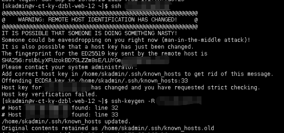 Offending ECDSA key in /home/skadmin/.ssh/known_hosts:33