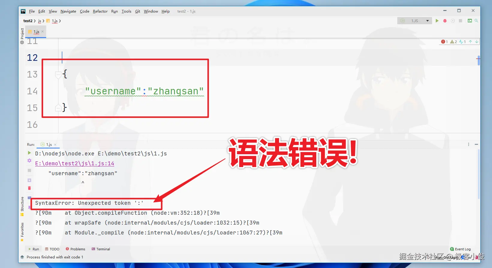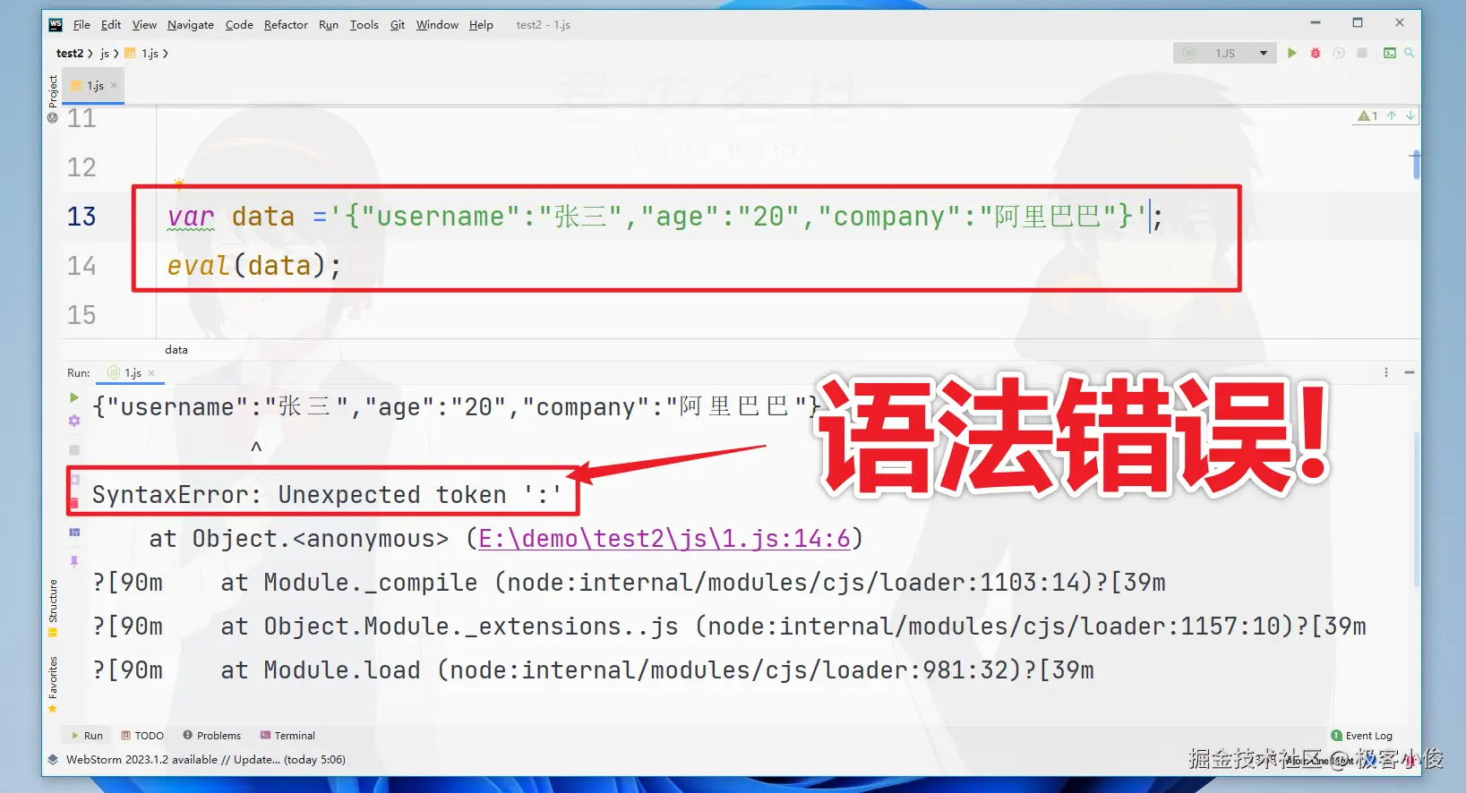 但是如果我写成以下这样就会给你报一个SyntaxError语法错误