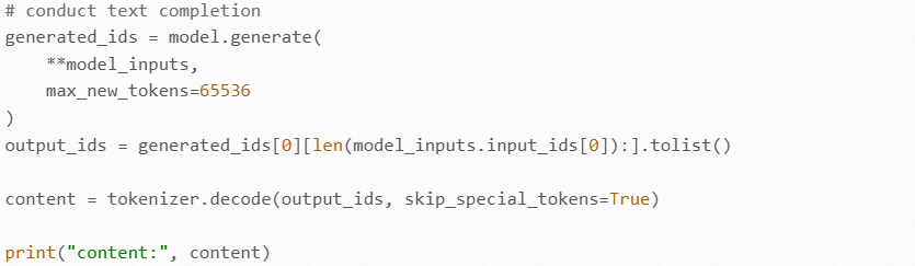 使用模型实例对输入执行推理,生成输出,使用分词器对输出执行解码: