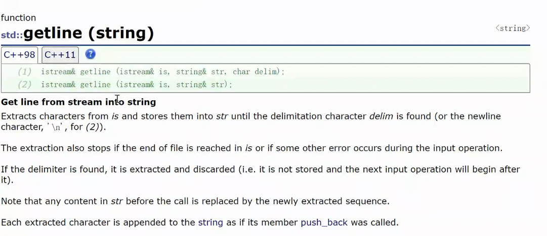 getline还有一个很厉害的功能:可以自己设定遇到哪个字符结束输入,这个符号放置在第三个参数的位置,第一个参数是istream类型,就是流插入运算符。