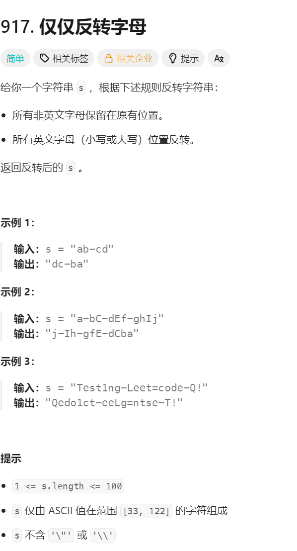 链接如下:https://leetcode-cn.com/problems/reverse-only-letters/submissions/