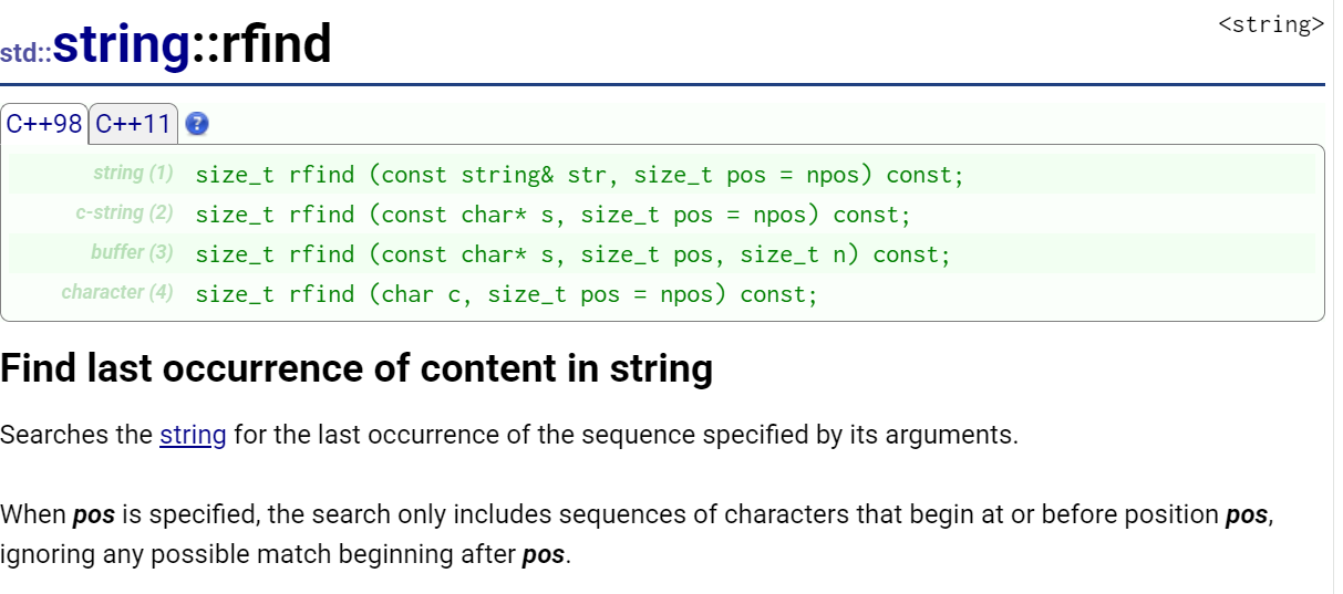 (1)寻找空格。但是如果有多个空格怎么办?例如:have a nice day。那我们就可以倒着去找空格,怎么倒着去找空格呢,string中有一个接口已经帮我们实现了: