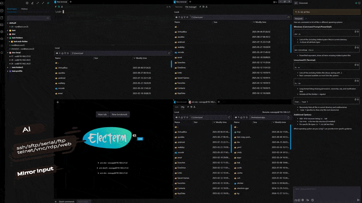 开源终端/ssh/telnet/serialport/RDP/VNC/sftp/ftp客户端(linux, mac, win)。