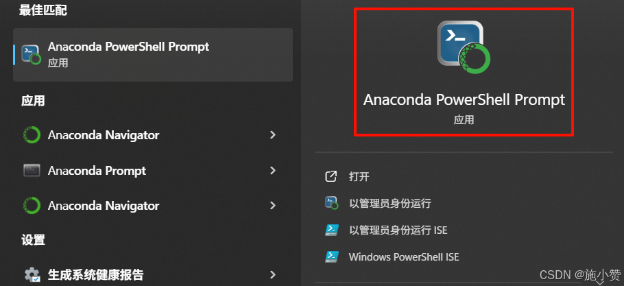 安装完成后,打开终端 Anaconda Powershell Prompt,