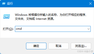按下"Win+R",输入"cmd",点击确定,打开命令提示符