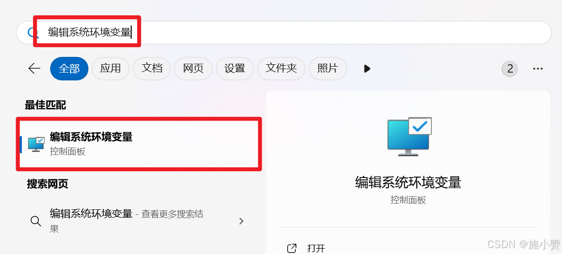 Windows操作系统下同时按下"Win+S"打开搜索栏,搜索"编辑系统环境变量"可进入查看和编辑环境变量。