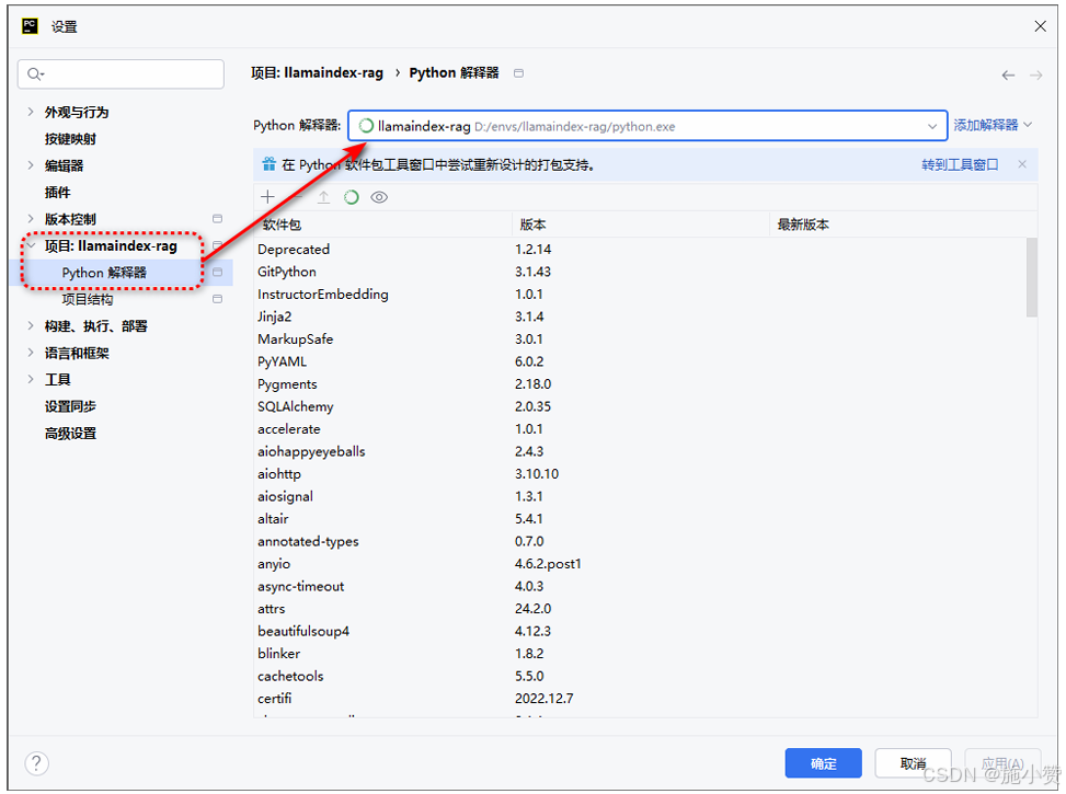 注意: 项目中需要另外的依赖库, 直接到 Conda Powershell Prompt终端下, 激活 llamaindex-rag环境, 使用 pip 安装依赖库即可!