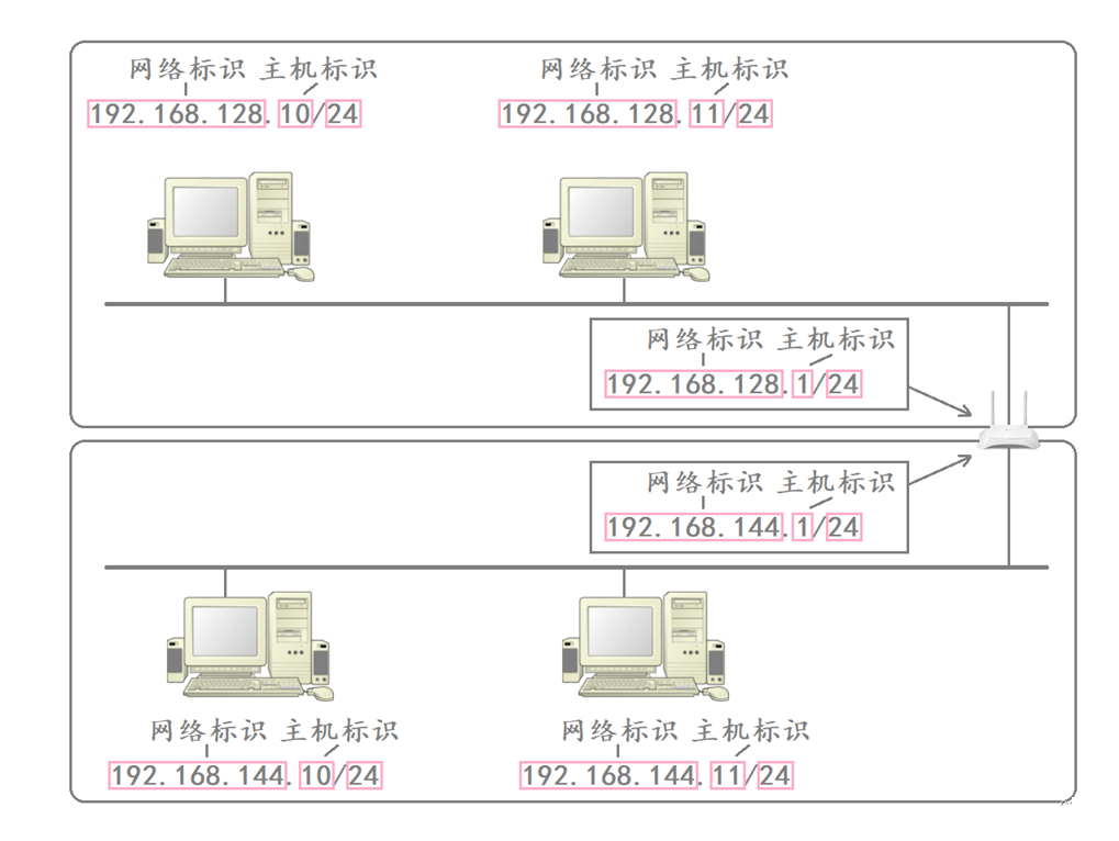 假设该子网当中有一台主机对应的IP地址是192.168.128.10,那么将这个IP地址与该网络对应的子网掩码进行"按位与"操作后得到的就是192.168.128.0,这就是这个子网对应的网络号。