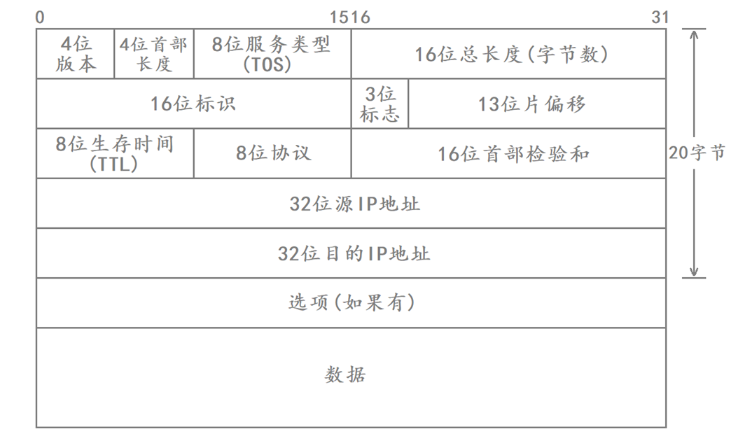 这里其实与TCP类似,TCP那里也有4位首部长度,所以当IP从底层获得一个报文后,首先拿到其前20字节,然后提取其中的4位首部长度字段,得到整个报头大小size,如果size大于20,那么就说明选项字段还有字节,其大小就为size-20,除去基本报头和选项,剩下的就是有效载荷了。