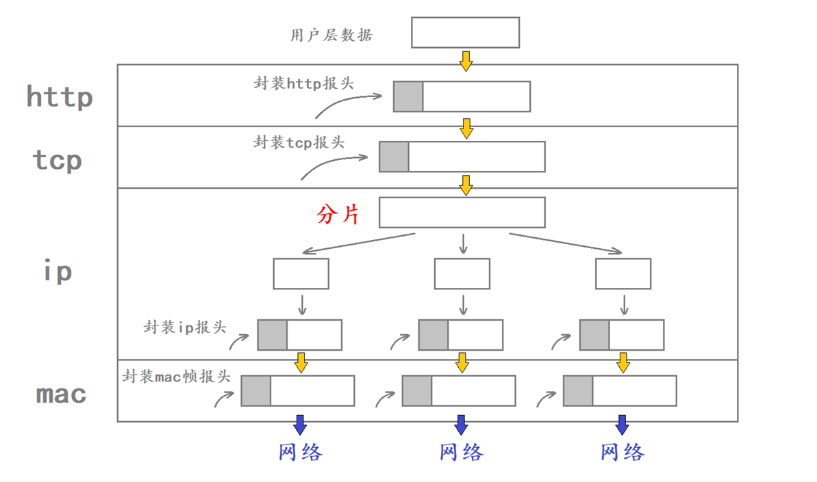 如果IP层要传送的数据超过了1500字节,那么就需要先在IP层对该数据进行分片,然后再将分片后的数据交给下层MAC帧进行发送。