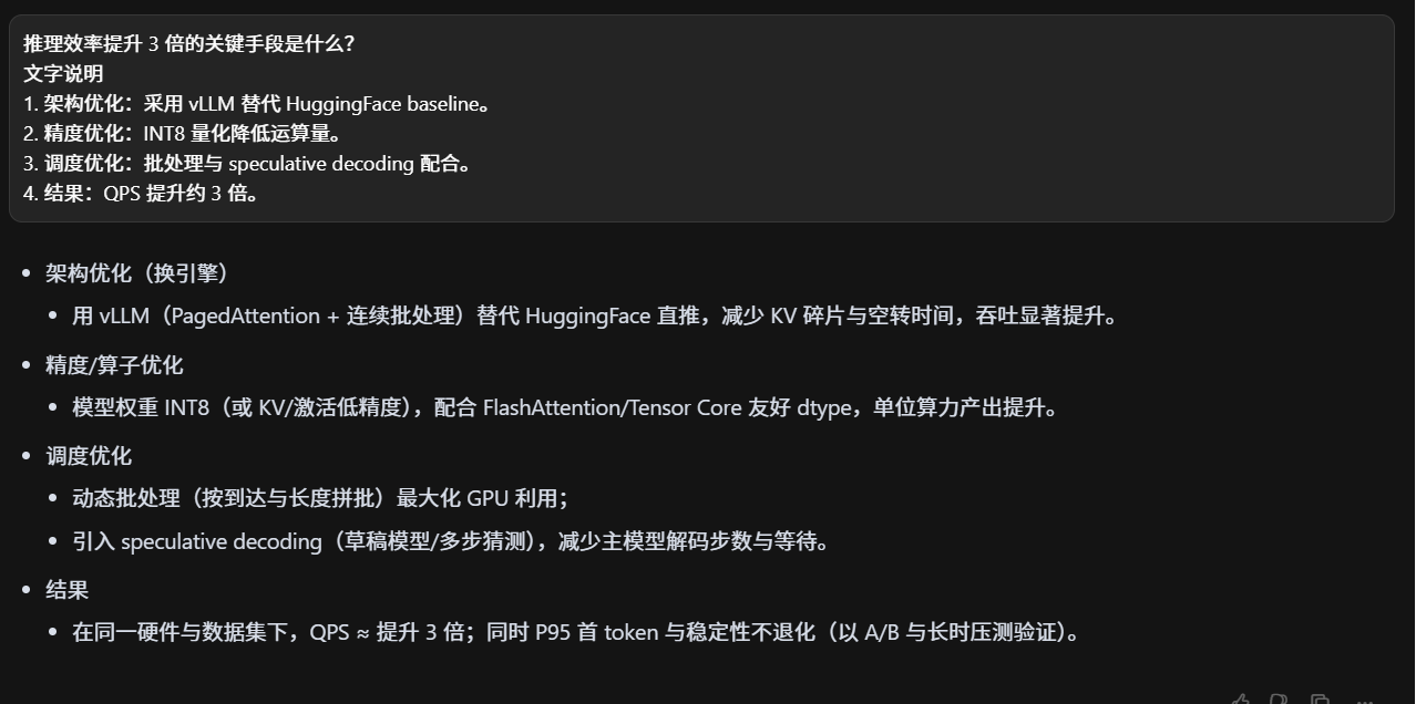 - 参数一致性:Top-K=5,温度=0,最大生成长度相同。
