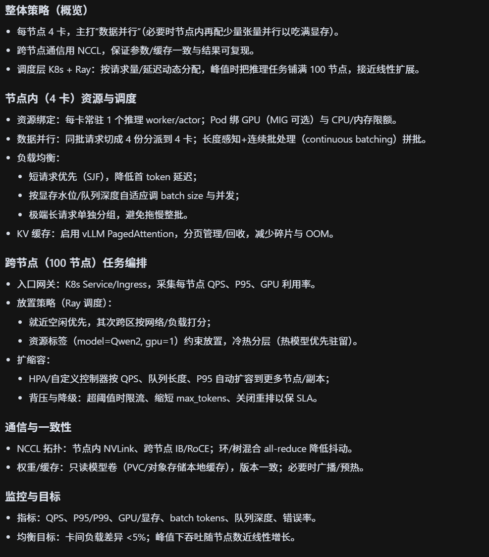 4 卡并行 + 100 节点分布式部署的资源分配与任务调度逻辑是怎样的?