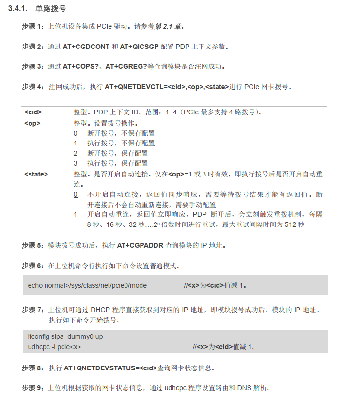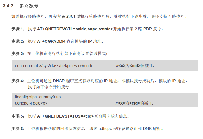 这里移远关于PCIE的文档中已经提供了单路拨号和多路拨号的说明,下面是搬抄的内容;