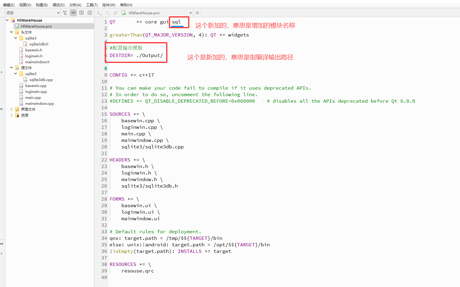 首先需在项目配置文件(.pro)中添加SQL模块依赖:QT += sql