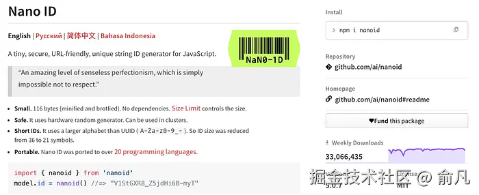 NanoID 是一种小巧、快速且安全的 UUID 替代品,设计为便于在 URL 中使用,并且在大小方面具有可定制性。