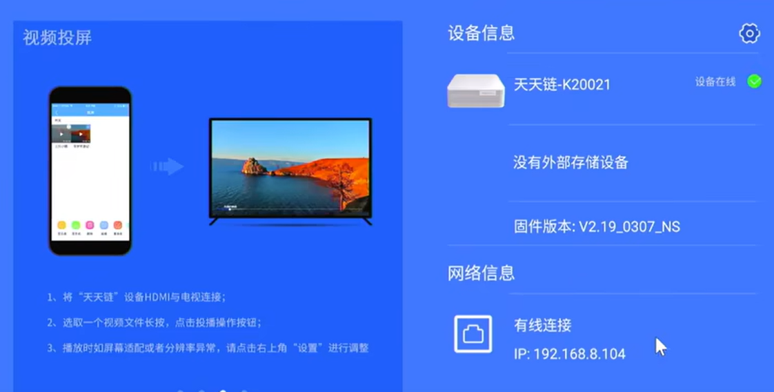 2.3 连接网络(wifi或者路由器)获得IP地址,提示连续点击打开adb功能