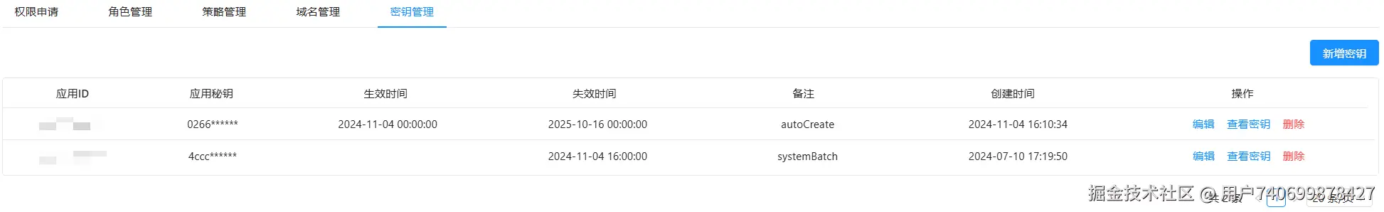 - 每个应用都可以配置多个密钥,多密钥机制可以确保应用在需要更换密钥时平滑过渡。