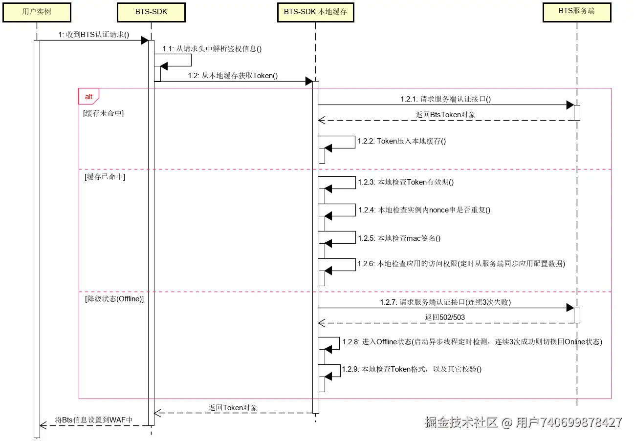 权限本地校验:启动异步定时器每隔5分钟从BTS服务端拉取最新的应用配置数据,当令牌缓存命中时直接使用本地签名校验和访问权限校验,可以避免过多的服务端交互以提升性能。