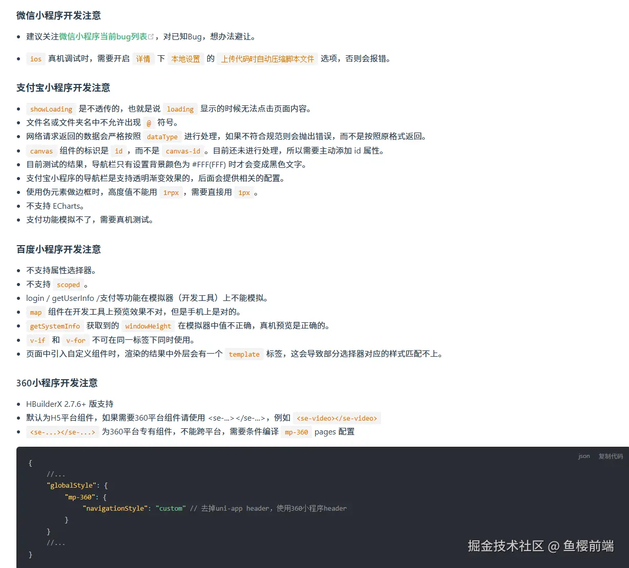 小程序开发注意