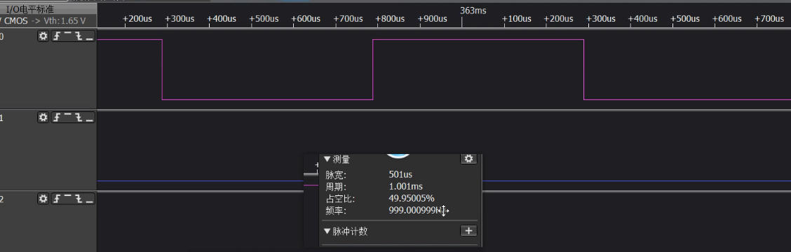 逻辑分析仪抓取的 50% 占空比波形如下: