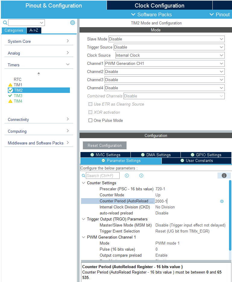 2.3 CubeMX 配置(定时器 2 生成 50Hz PWM)