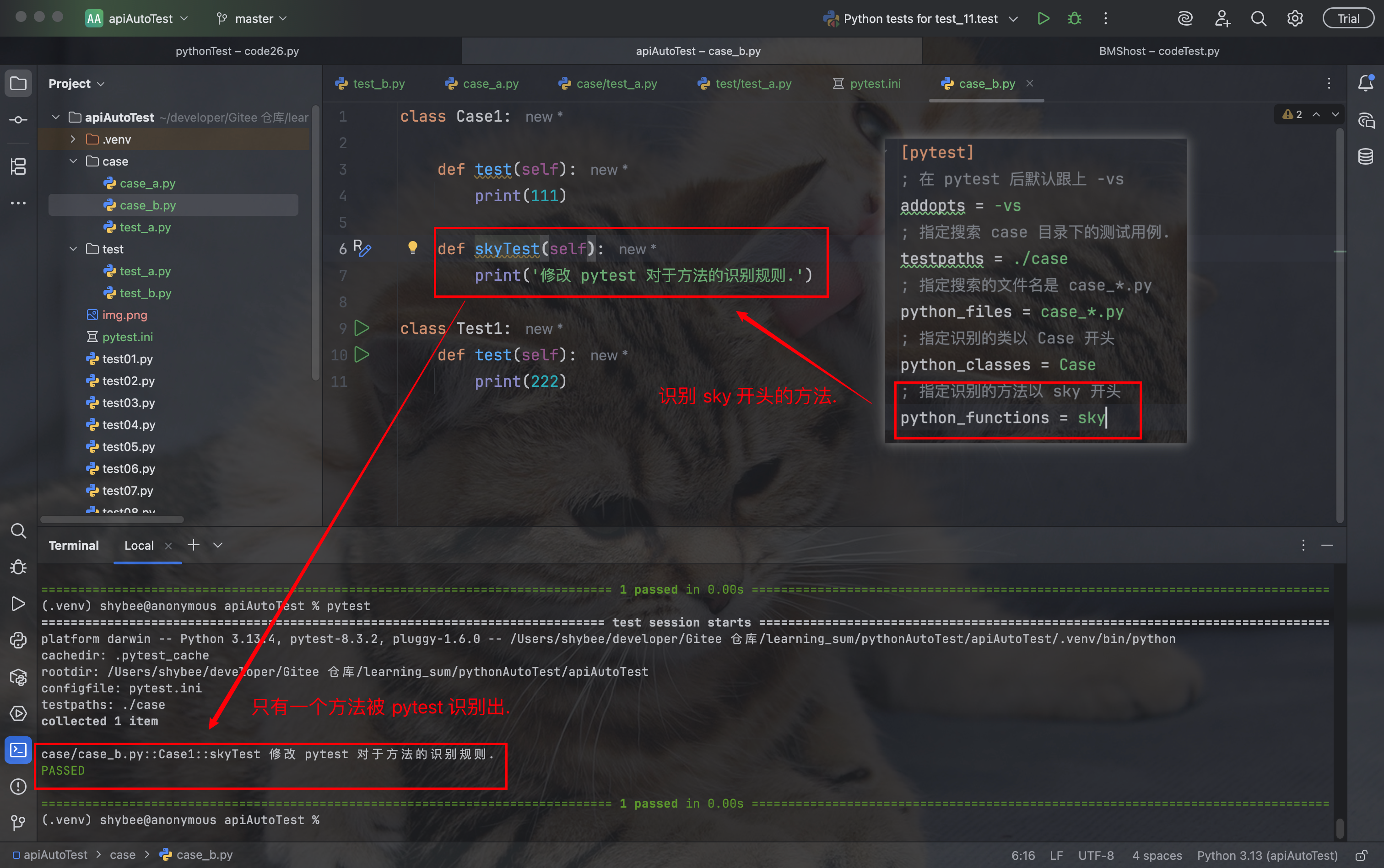 注意: 并不是所有的方法都会被 pytest 识别, 只有符合以下命名规则的方法, 才会被 pytest 识别并自动被执行: