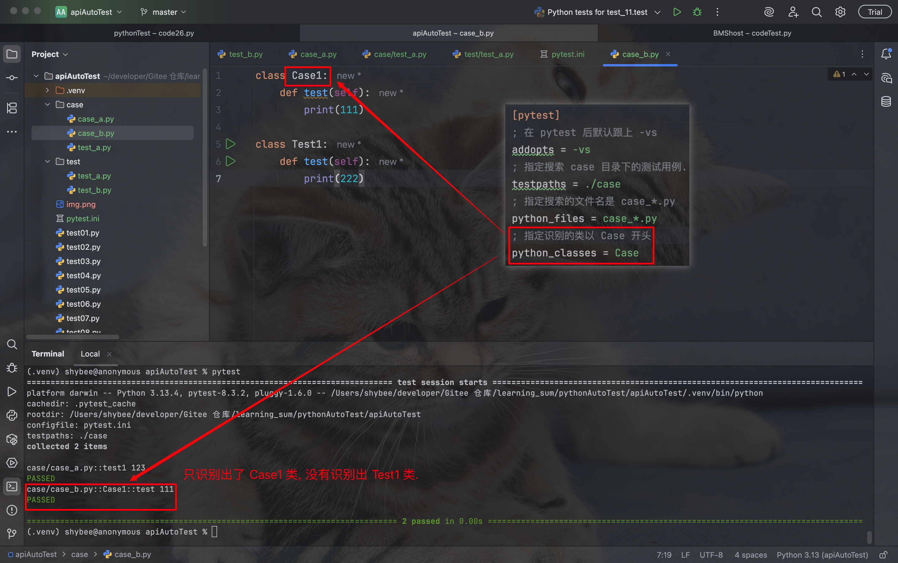 至于为什么类中不能有初始化方法, 是由于 pytest 的测试用例收集机制导致的, 感兴趣的可以了解一下: