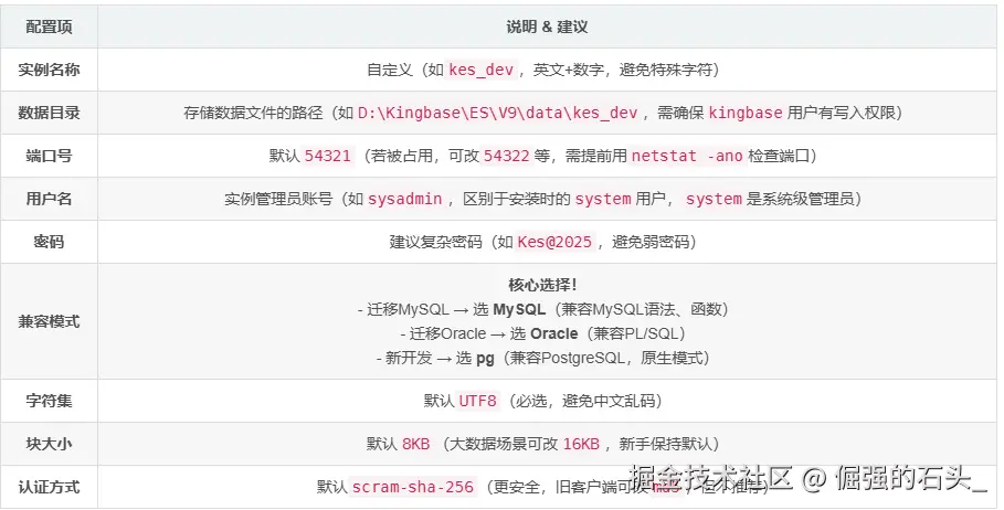 - ✅ 创建之后可登记为系统服务:比如登记成"KingbaseES_V9_kes_dev"这个Windows服务,这样做便于实现开机自动启动并加以管理