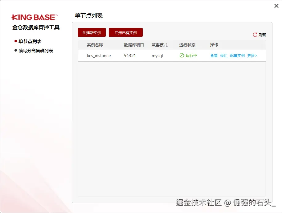 点击「创建新实例」,会进入到配置向导当中,在【单节点列表】这个界面里面,要点击那个红色的按钮【创建新实例】,然后才能去设置实例相关的参数