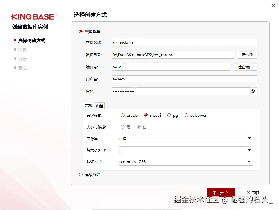 如果需要调整内存、连接数等高级参数,勾选 【高级配置】 ;否则直接点击 【下一步】 。