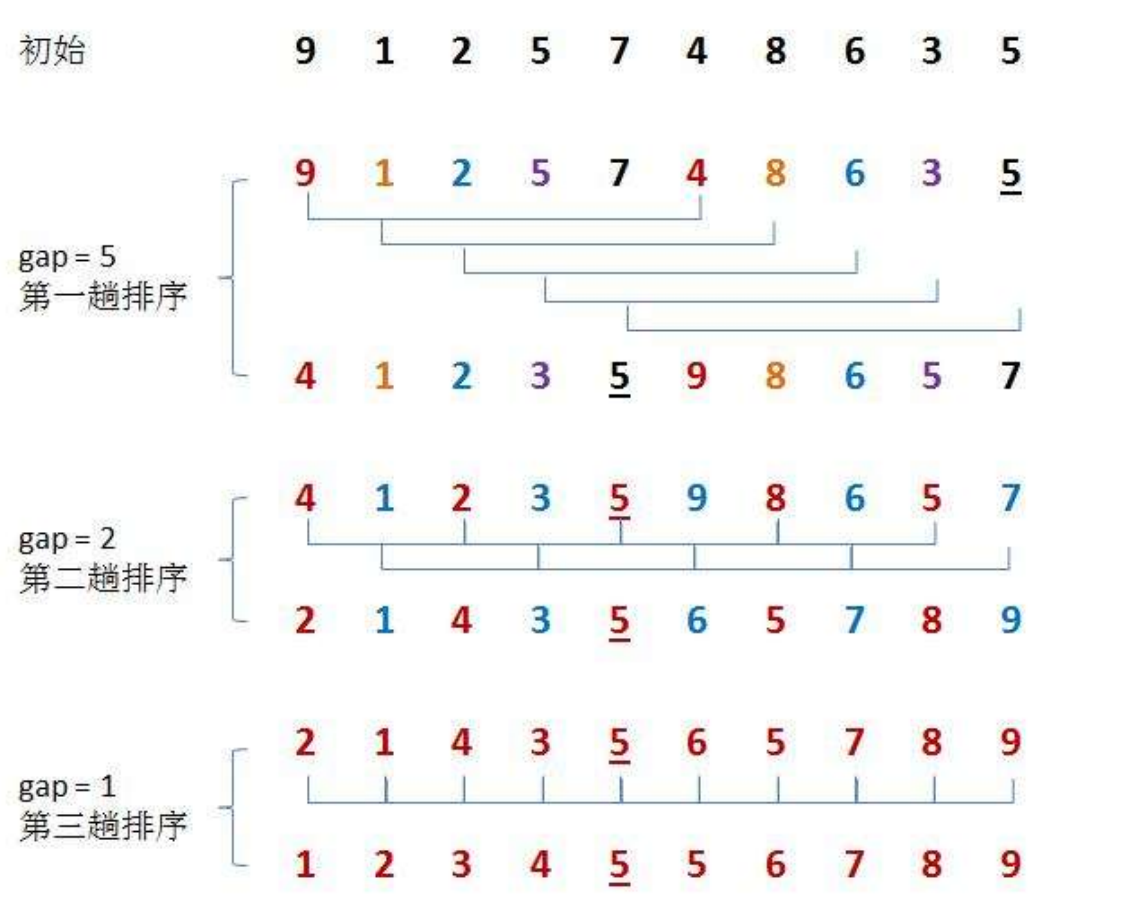 - gap 的取法 : 一般取 gap = len/2 , gap = gap/2 , 直到 gap 为 1 或者取 gap = gap/3+1.