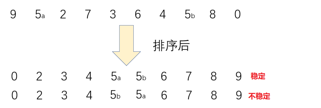- 稳定性 : 假定在待排序的记录序列中 , 存在多个具有相同的关键字的记录 , 若经过排序 , 这些记录的相对次序保持不变 , 即在原序列中 , r[i] = r[j] , 且 r[i] 在 r[j] 之前 , 而经过排序后的序列 r[i] 仍然在 r[j] 之前 , 则称这种算法是稳定的 , 否则为不稳定的