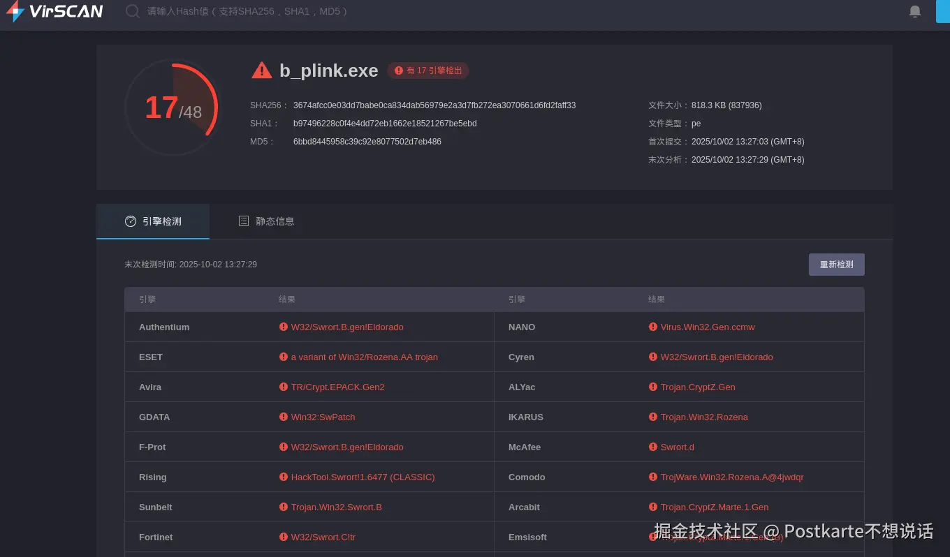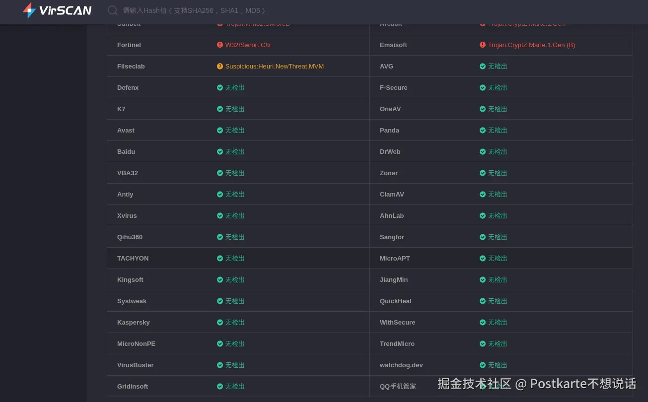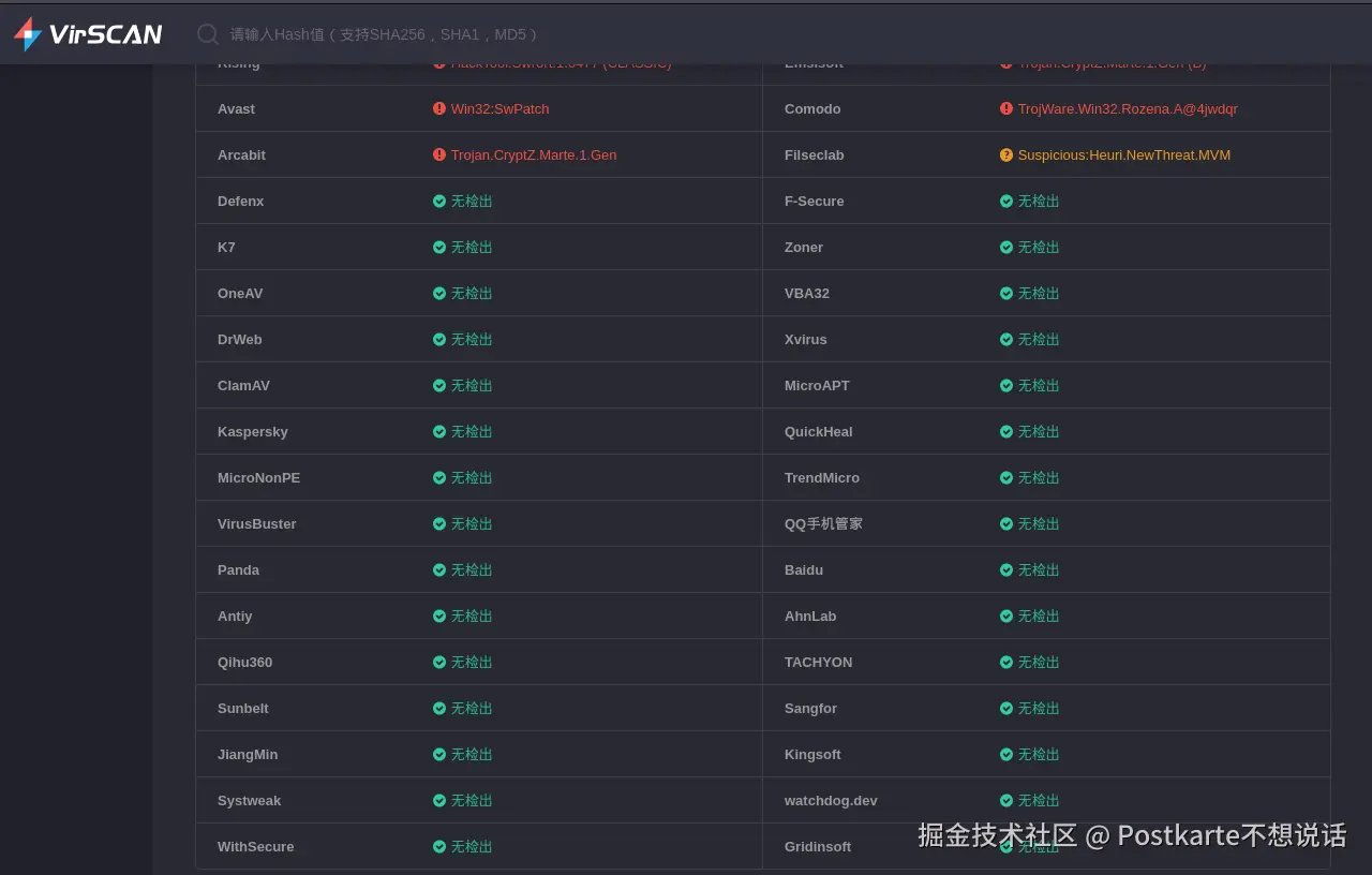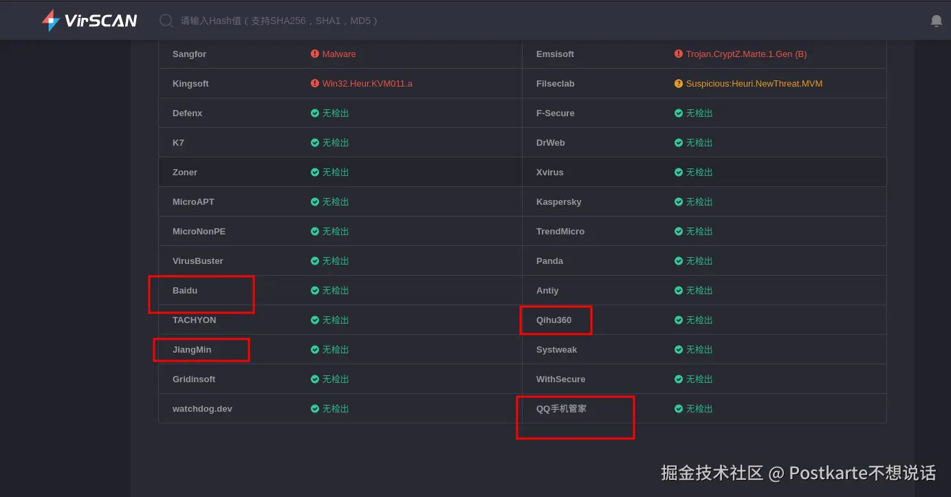 有大于一半的杀毒软件会报警,但是国内的杀毒软件直接显示无检出(害怕)。