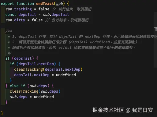 接下来定义 job 函数,它作为 effect 的调度器。当监听的数据变化时,job 被触发,主要步骤如下: