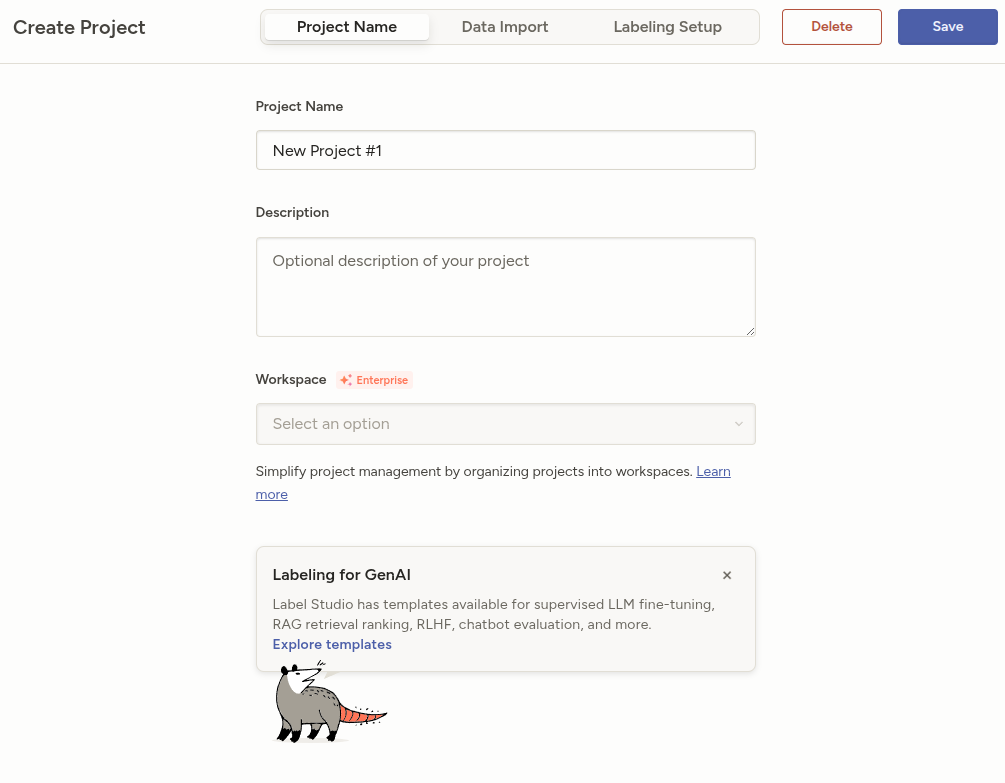 安装并启动后,浏览器会打开 Label Studio 界面。