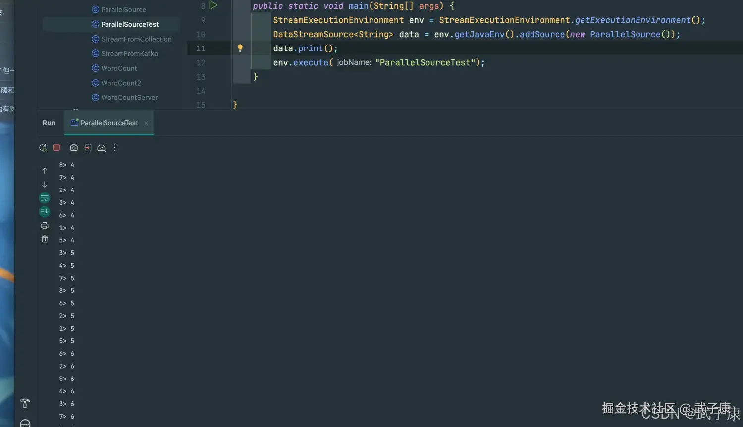 - 分片处理:并行源通常会将数据源分成多个分片(shard)或分区(partition),每个分片由不同的并行实例处理。这样可以将大量的数据分摊到多个并行实例上,实现更高的处理效率。