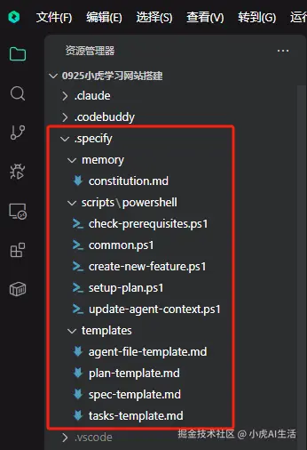 于是,我输入了init,spec初始化完成后,项目里多了一个目录.specify