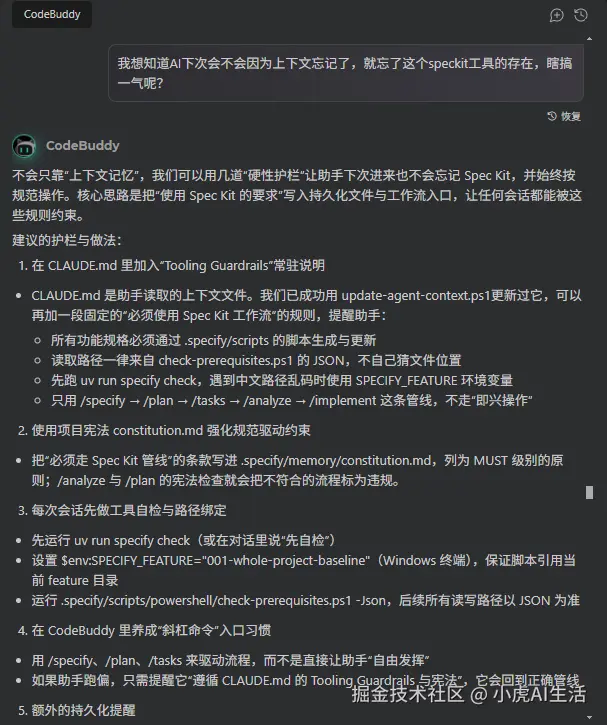 我想知道AI下次会不会因为上下文忘记了,就忘了这个speckit工具的存在,瞎搞一气呢?