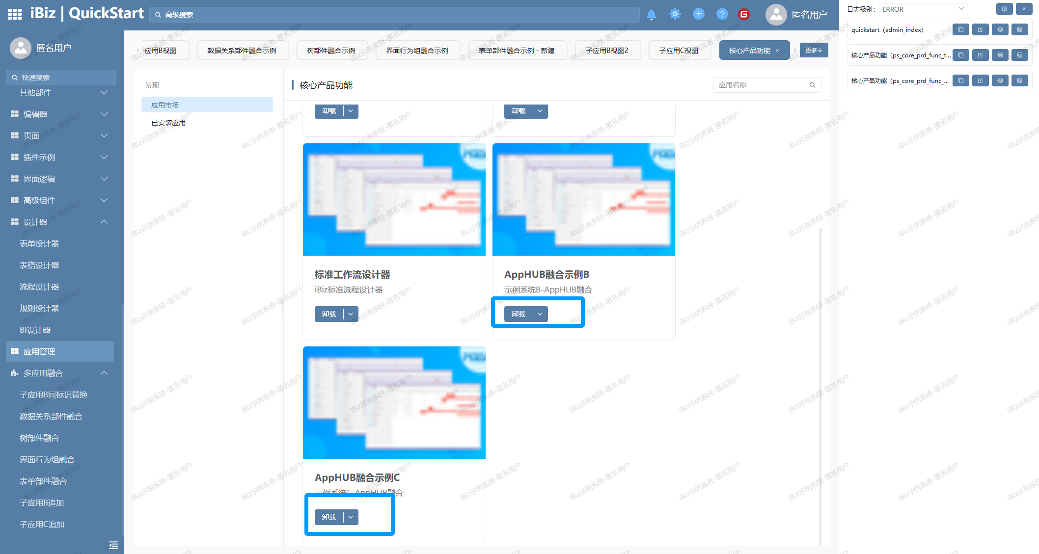 iBizAppHUB 的应用融合是热融合,也就是安装插件后刷新界面即可应用,无需重新执行构建或是其它合并操作
