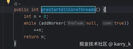 - 默认情况下线程不会预创建,任务提交之后才会创建线程(不过设置 prestartAllCoreThreads 可以预创建核心线程)。